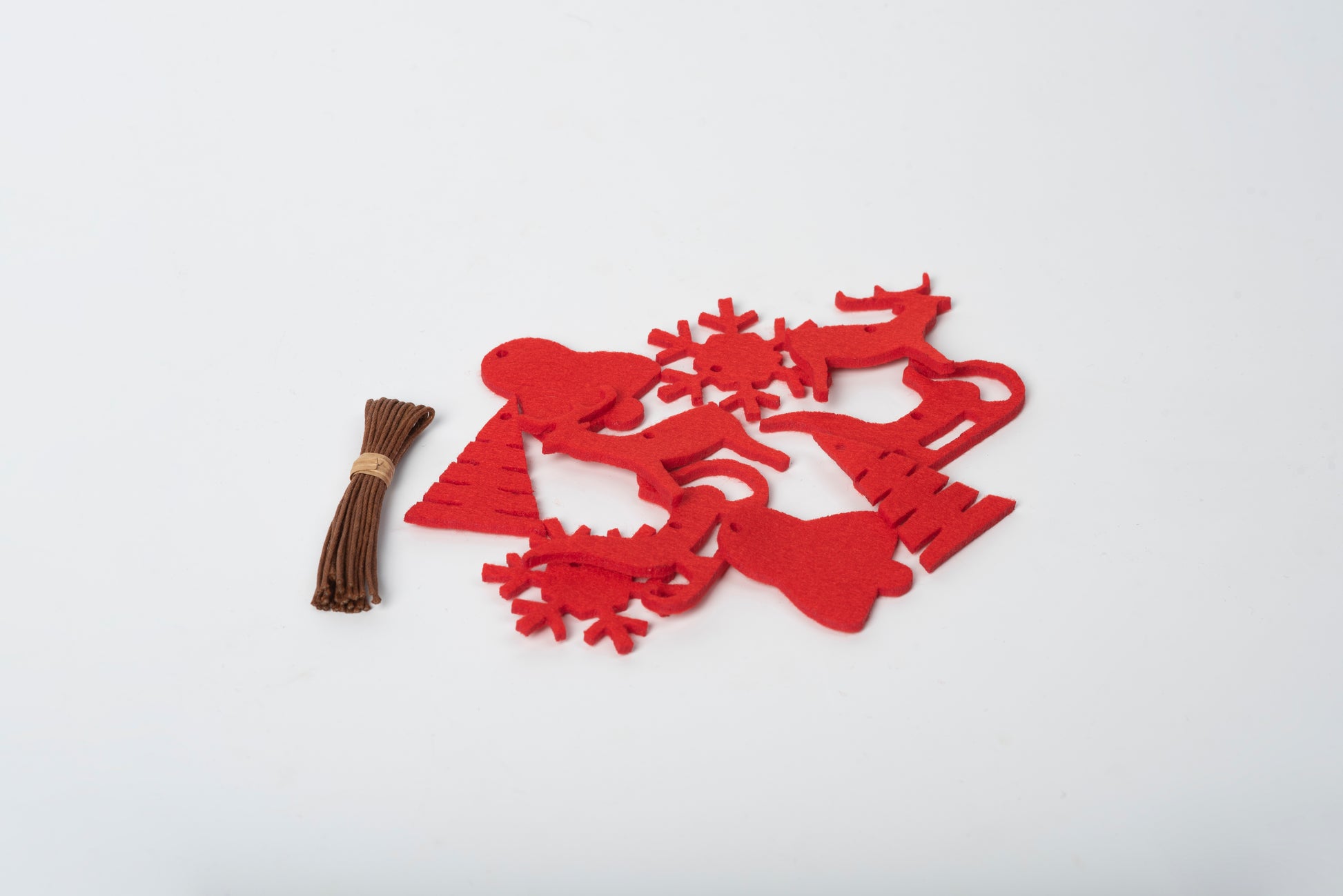 Zestaw zawiera 10 filcowych ozdób w 5 popularnych motywach bożonarodzeniowych. Ozdoby dostępne są w trzech różnych rozmiarach. W zestawie znajdują się również sznurki do zawieszenia dekoracji.