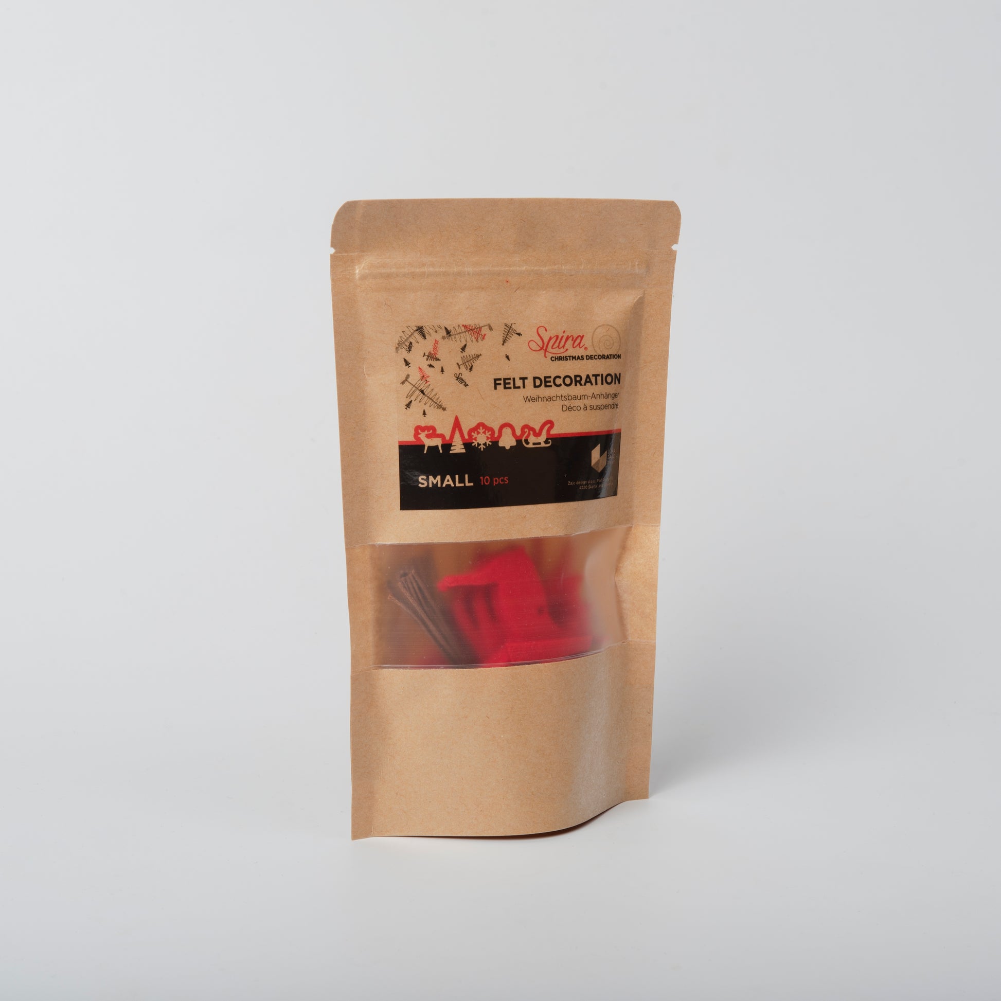 Zestaw 10 ozdób noworocznych wykonanych z czerwonego filcu zapewni idealny świąteczny nastrój. Dzięki nim możesz udekorować choinkę Spira lub puścić wodze fantazji i udekorować, co tylko chcesz.