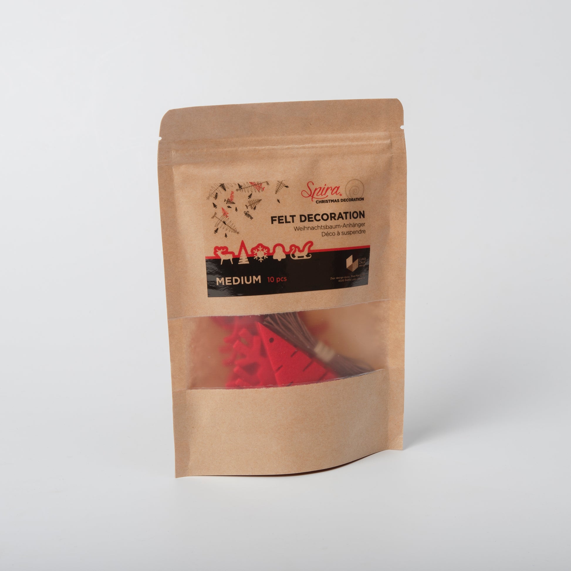 Zestaw 10 ozdób noworocznych wykonanych z czerwonego filcu zapewni idealny świąteczny nastrój. Dzięki nim możesz udekorować choinkę Spira lub puścić wodze fantazji i udekorować, co tylko chcesz.