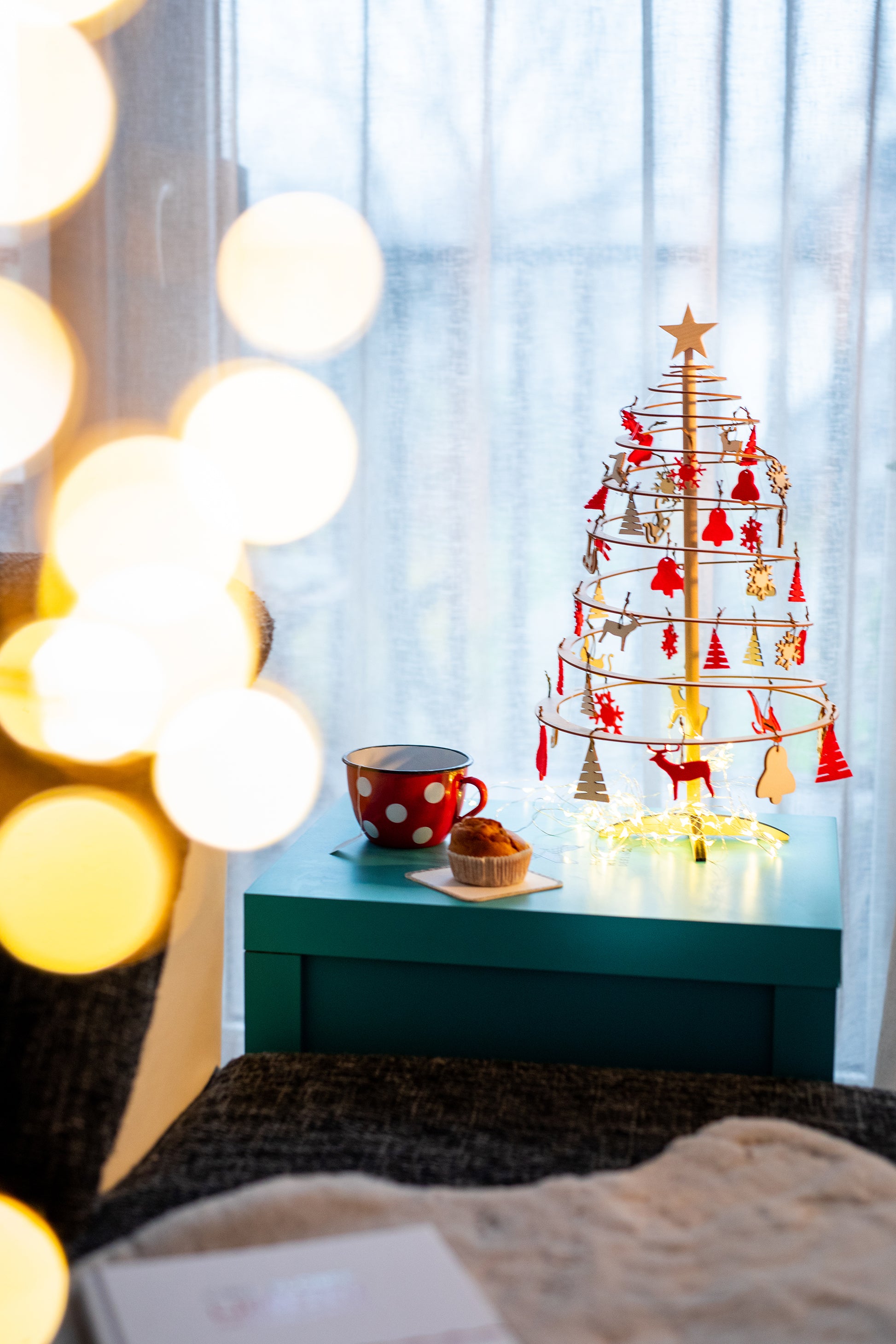 Spira Mini to idealna dekoracja stołu do domu lub biura. Unikalny element projektu, który natychmiast tworzy świąteczną atmosferę. Drzewko Spira Mini z czubkiem w kształcie gwiazdy.