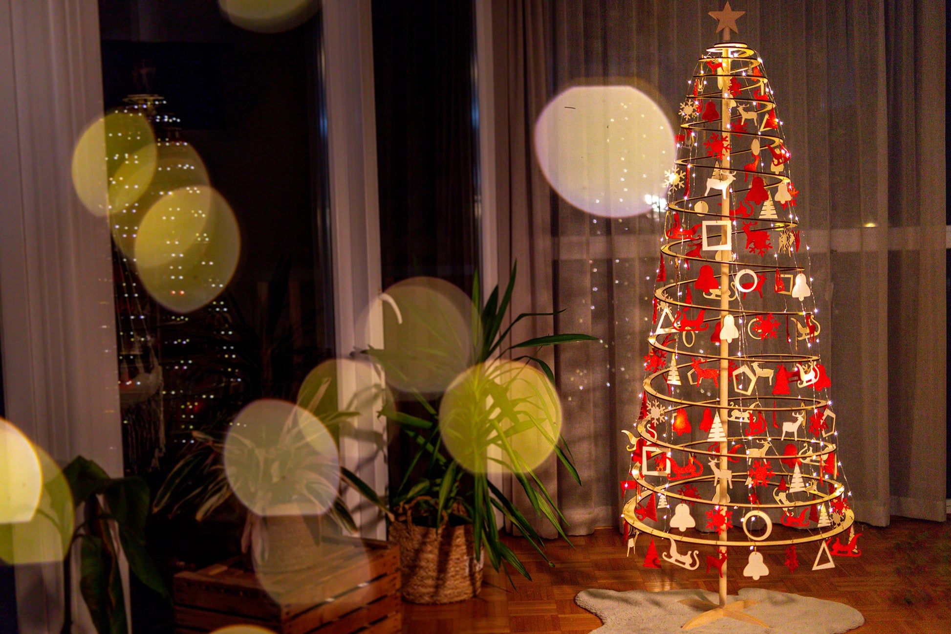 Spira Slim ma 190 cm wysokości. Możesz ją po prostu złożyć bez użycia narzędzi. Po użyciu po prostu przechowuj drzewko w pudełku o wysokości 5 cm, gdzie będzie czekać do następnego sezonu.